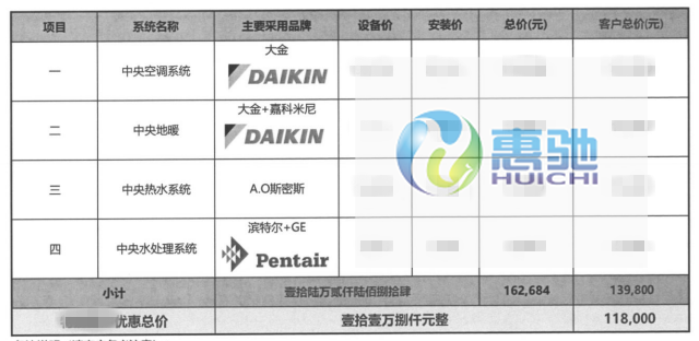 家居集成系統:大金住宅VRV-P中央空調系統  大金VRV-U系列全效中央空調     嘉科米尼地暖管路系統  A.O史密斯中央熱水系統   濱特爾中央水處理