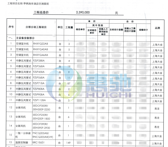 項(xiàng)目?jī)?nèi)容:大金VRVD系列中央空調(diào)    易龍第五代全新風(fēng)變頻空調(diào)機(jī)    酒店排風(fēng)系統(tǒng)改造安裝