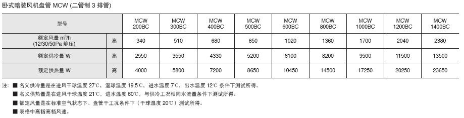 臥式暗裝風機盤管MCW