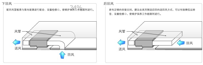 室內機擁有后回風口和下回風口兩種安裝方式,可根據實際安裝空間或裝修風格靈活互換。