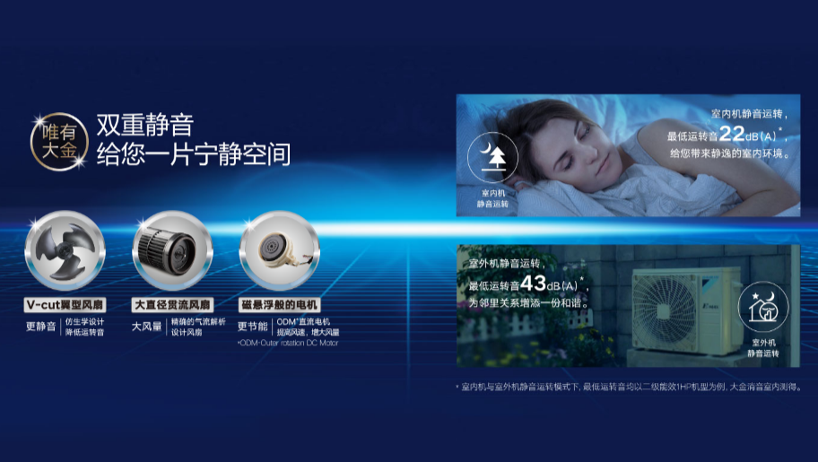 通過Outer rotation DC Motor直流電機(jī),源源不斷地為風(fēng)扇提供高速運(yùn)轉(zhuǎn)的強(qiáng)勁動(dòng)力,最大程度避免了機(jī)械摩擦,使室內(nèi)機(jī)風(fēng)扇可以像磁懸浮列車一樣高速、平穩(wěn)的運(yùn)行。